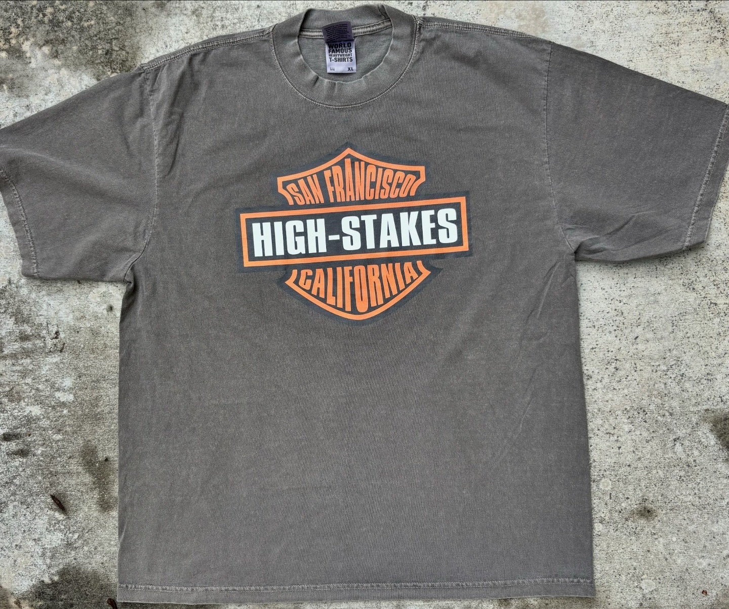 • High stakes graphic designs• 7.5 oz / 245 - 255 GSM • 100% USA cotton • 90s Boxy fit• Dyed for vintage retro look
