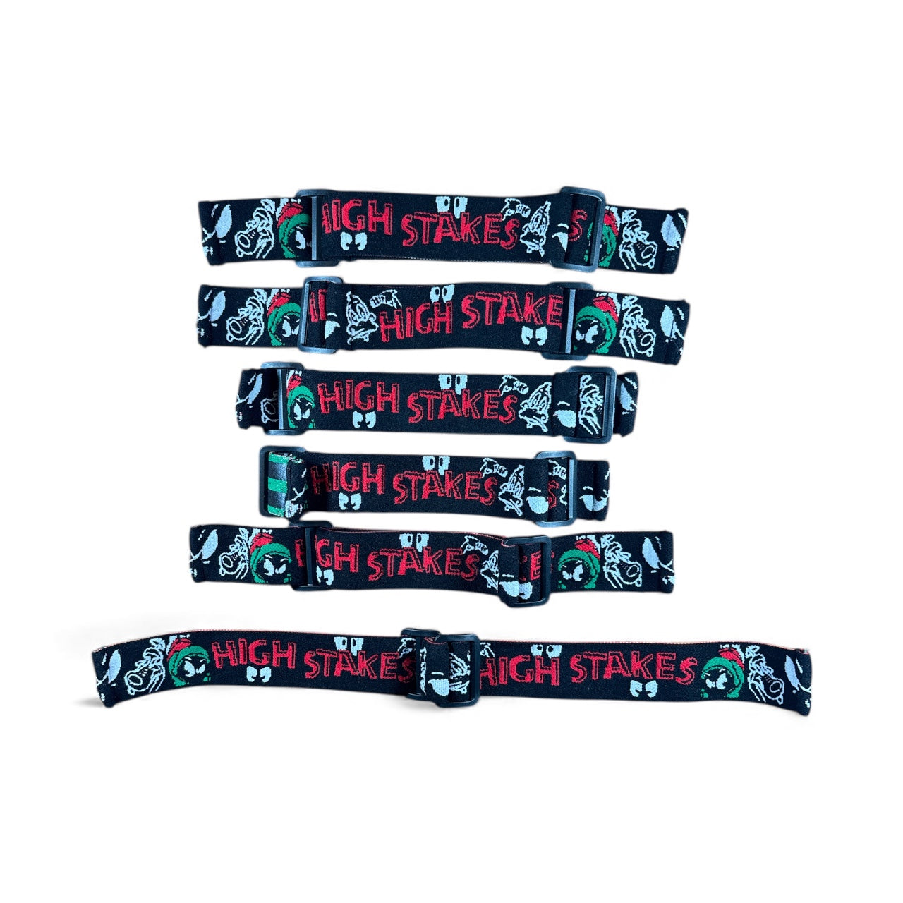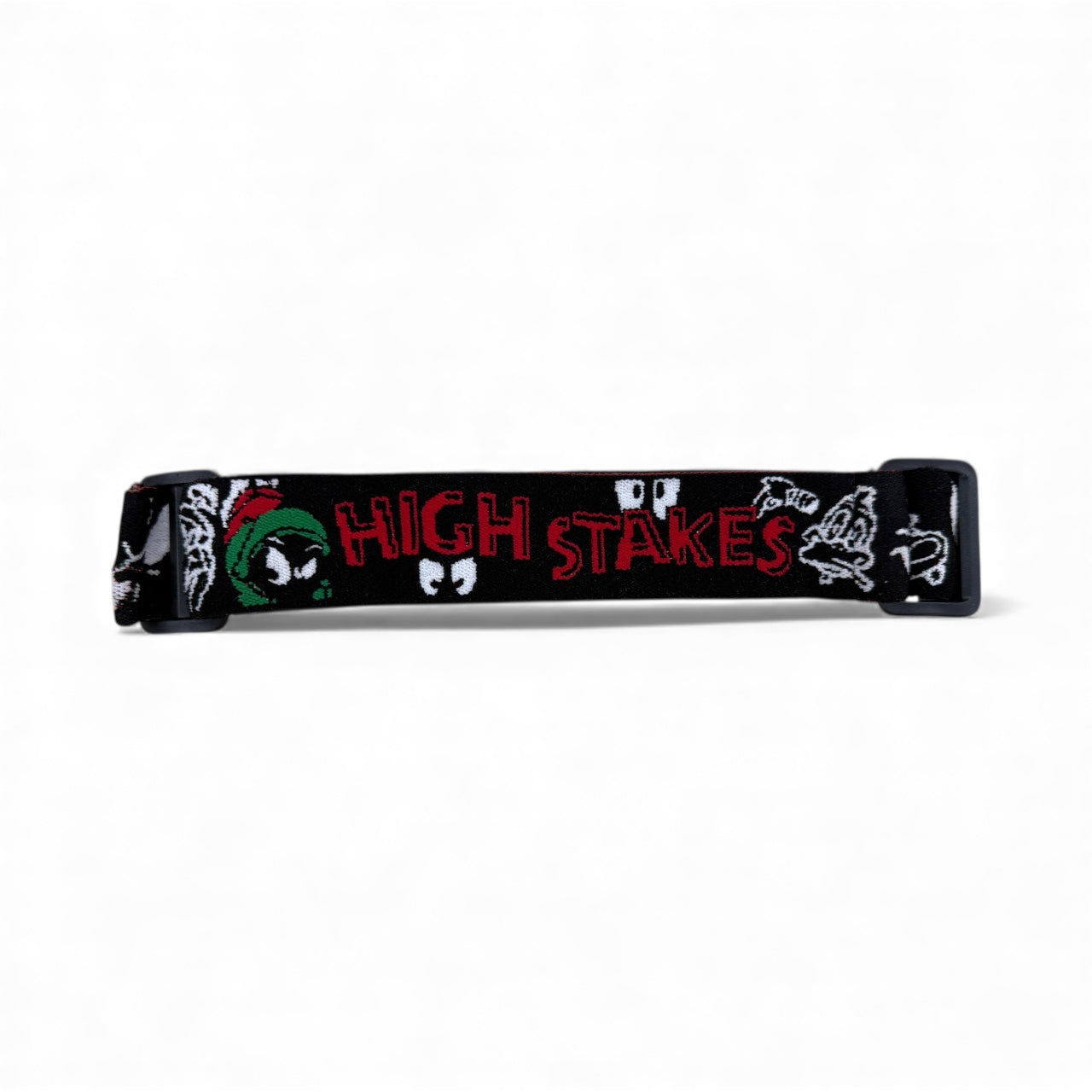 High Stakes Woven goggle strap. Marvin woven design. Heavy duty hardware clips. Silicone lining.